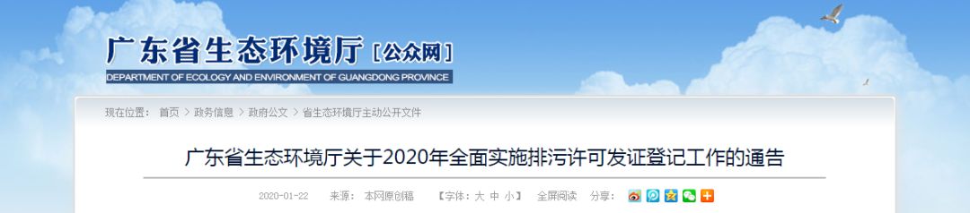 关于2020年全面实施排污许可发证登记工作的通告